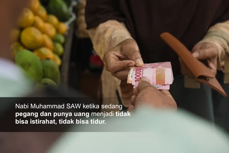 Nabi Muhammad SAW ketika sedang pegang dan punya uang menjadi tidak bisa istirahat, tidak bisa tidur. Kita sebagai umatnya bagaimana? Ketika sedang tidak punya dan tidak pegang uang apakah kita bisa istirahat dan tidur dengan nyenyak? Kalau penulis, ketika sedang tidak punya dan tidak pegang uang maka tetap bisa tidur tapi sering mimpi buruk.